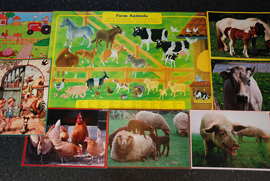 Plaatmateriaal: grote poster boerderijdieren, zeven A3-platen