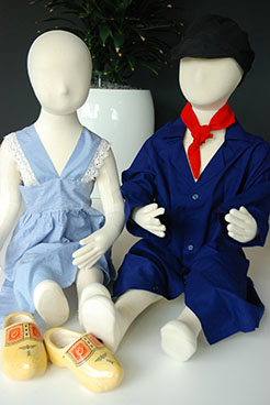 Kleding: boerenpet, overall, schortje en een rode halsdoek