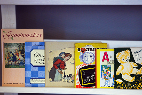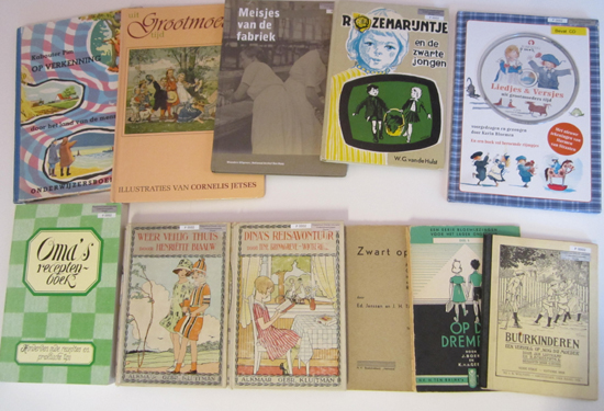 Boeken: zeven oude lees- en schoolboeken; Meisjes van de fabriek; Oma’s receptenboek; Uit Grootmoederstijd met cd en Liedjes en versjes uit grootmoederstijd met cd