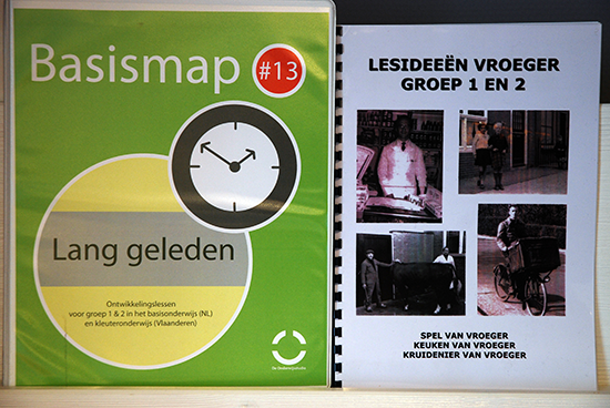 Lesideeën: Basismap (van Leskist.nl) Lang geleden en een brochure met lesideeën ‘Spel van vroeger’, ‘Keuken van vroeger’, ‘Kruidenier van vroeger’ (uit: Tom kijkt om – Annemieke van de Geer)