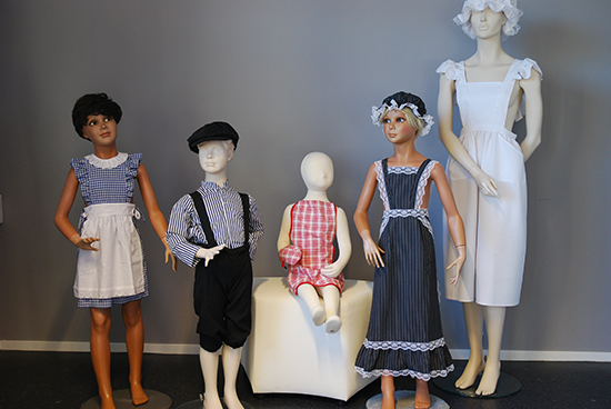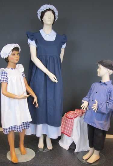 Kleding: Ot-pakje (pet, kiel en broek); Sien-pakje (muts, jurk en schort); Sien-pak volwassen maat (muts, jurk en schort); keukenschortje met ovenwant en een lange onderbroek
